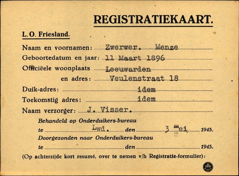 Onderduikregistratie van Menze Zwerwer