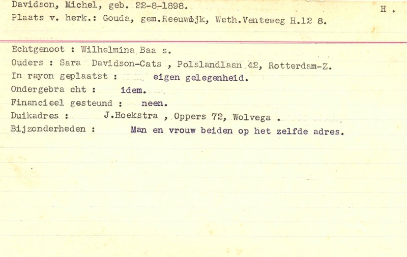 Duikadres: Oppers 72, Wolvega - Oorspronkelijk adres: Wethouder Venteweg H128, Gouda - Overige opmerkingen: Bijzonderheden: Man en vrouw beiden op het zelfde adres. -