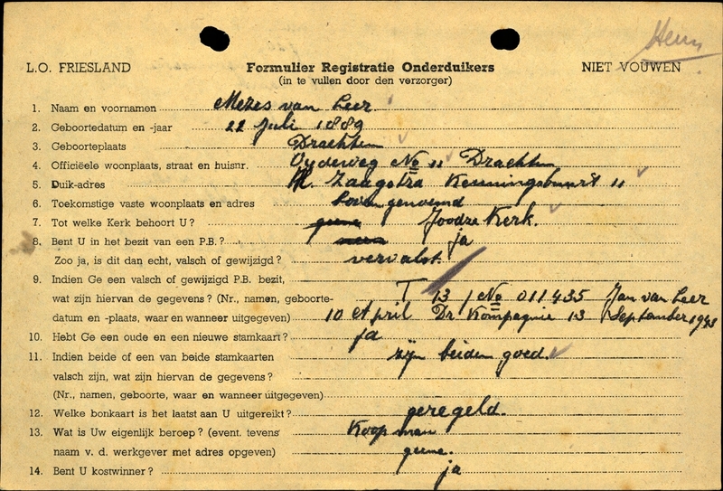 Duikadres: Keuningsbuurt 11, Drachten - Oorspronkelijk adres: Oudeweg 11, Drachten - Reden onderduik: jodenvervolging