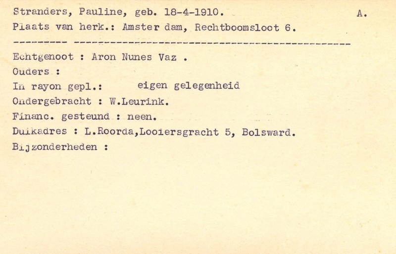 Onderduikinschrijving van Pauline Stranders
