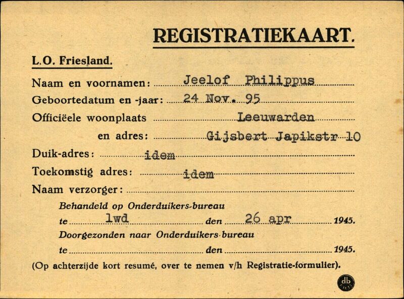 Onderduikinschrijving van Philippus Jeelof