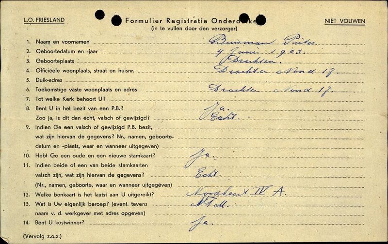 - Oorspronkelijk adres: Het Noord 17, Drachten - Reden onderduik: staking - Overige opmerkingen: Bijzondere opmerkingen: Opmerkingen: Enige schade aan deur en ramen.