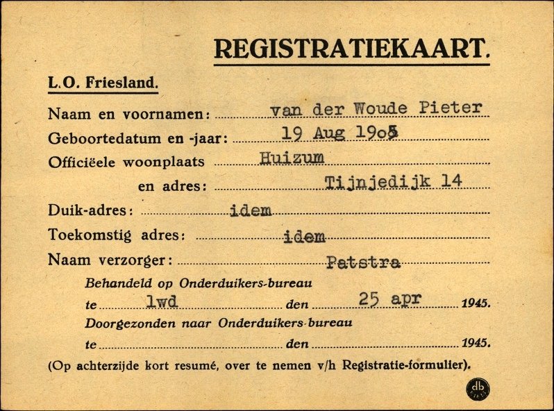 Onderduikinschrijving van Pieter van der Woude
