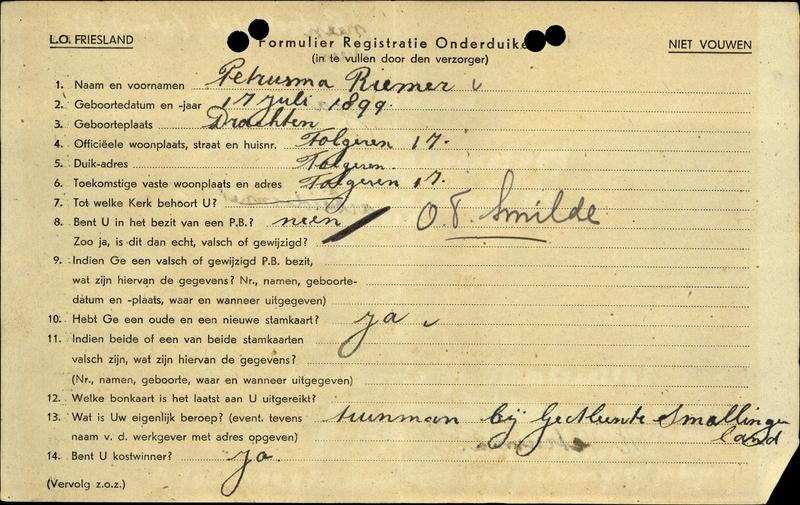 Duikadres: Folgeren 17, Drachten - Oorspronkelijk adres: Folgeren 17, Drachten - Reden onderduik: arbeidsinzet
