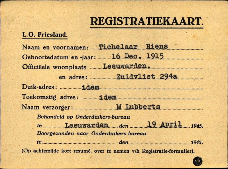 Duikadres: Zuidvliet 294a, Leeuwarden - Oorspronkelijk adres: Zuidvliet 294a, Leeuwarden - Reden onderduik: arbeidsinzet - Overige opmerkingen: Achterkant beroep: schipper - Achterkant naam werkgever: Eigen onderneming