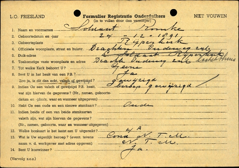 Onderduikinschrijving van Romke Soldaat