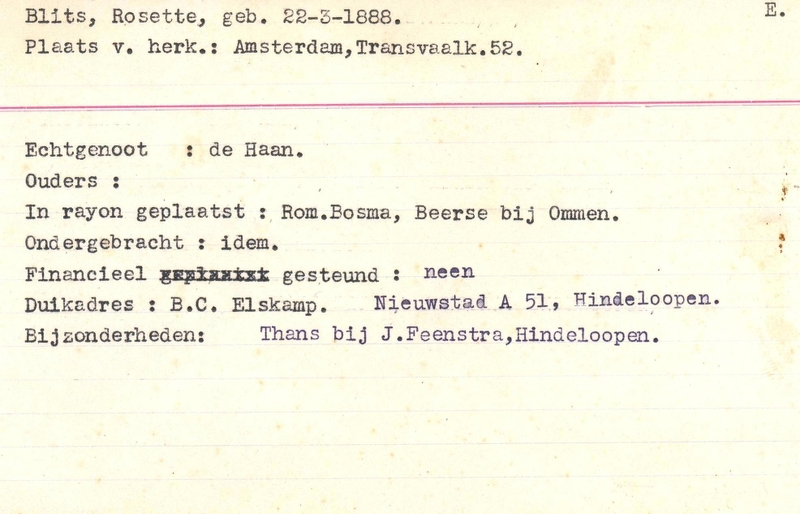 Onderduikinschrijving van Rosette Blits