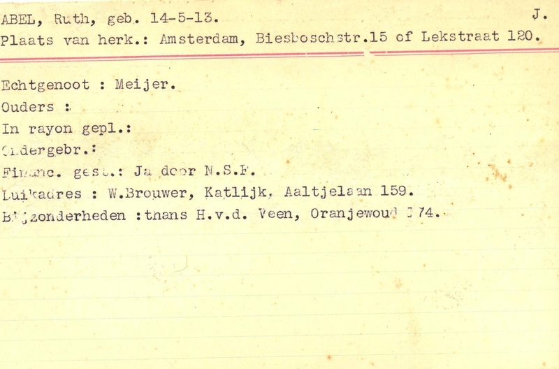 Duikadres: Aaltjelaan 159, Katlijk - Oorspronkelijk adres: Biesboschstraat 15, Amsterdam - Overige opmerkingen: Bijzonderheden: Financ. gest.: Ja door N.S.F - Thans H. v.d. Veen, Oranjewoud ? 74