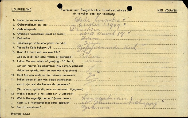 Duikadres: Noorderdwarsvaart 14?, Drachten - Oorspronkelijk adres: Noorderdwarsvaart 14?, Drachten - Reden onderduik: arbeidsinzet