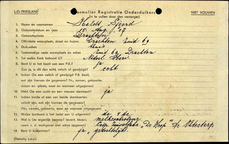 Onderduikinschrijving van Sjoerd Heldt