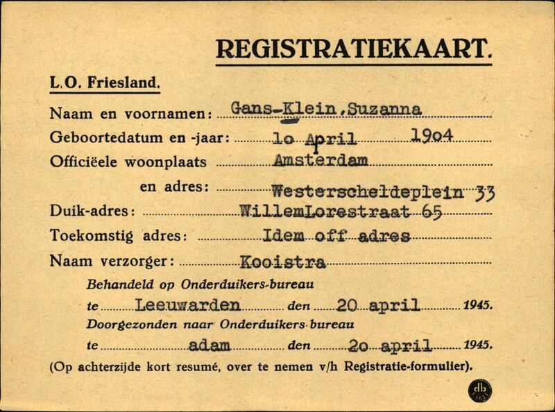 Onderduikinschrijving van Suzanna Klein