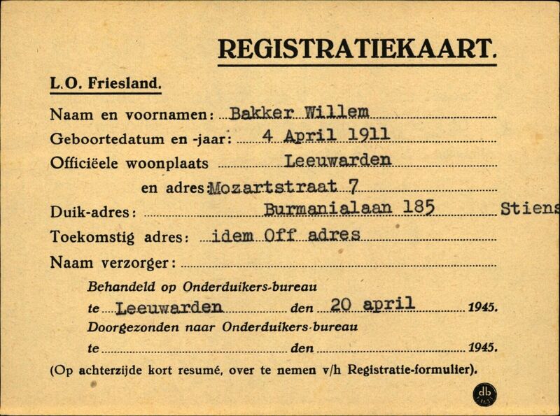 Onderduikinschrijving van Willem Bakker