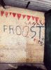 Muur met schilderingen van de grote oranje letter V, waar bovenop een persoon is afgebeeld die een blaasinstrument bespeelt. Boven deze afbeelding is 'Vrij-vreugde' geschreven. Beiden letters V zijn ook oranje gekleurd., 1945