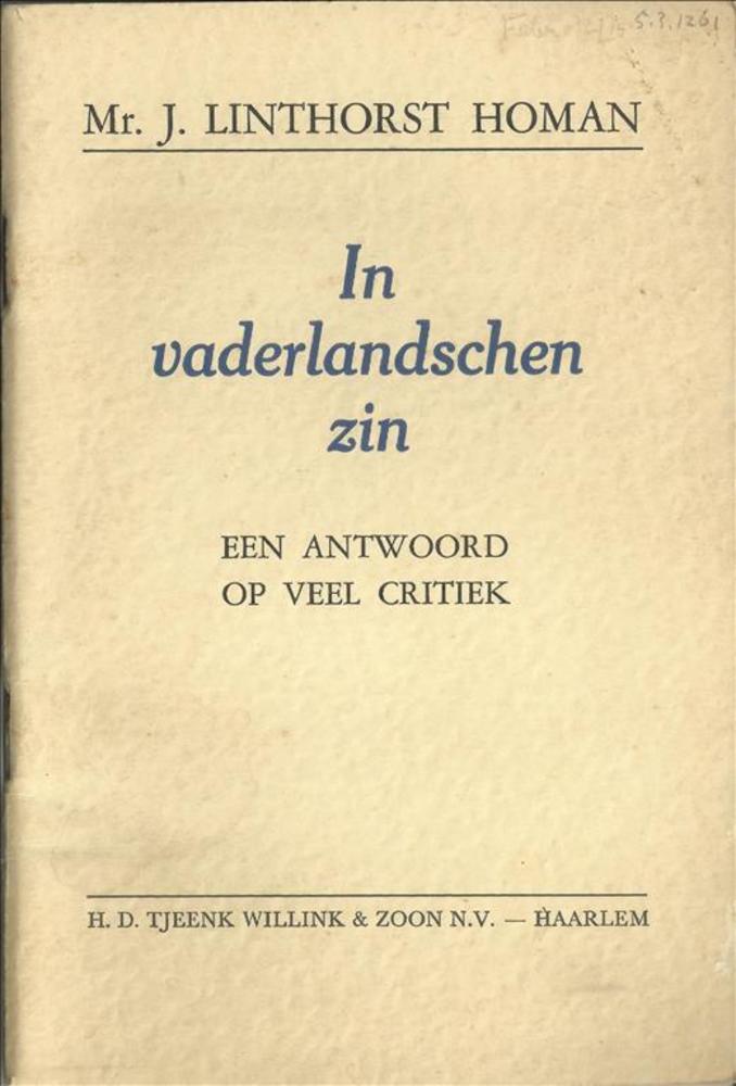 J. Linthorst Homan, 'In vaderlandschen zin. Een antwoord op veel critiek', 1940