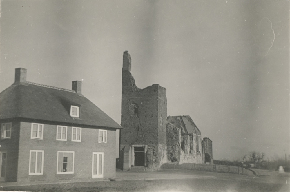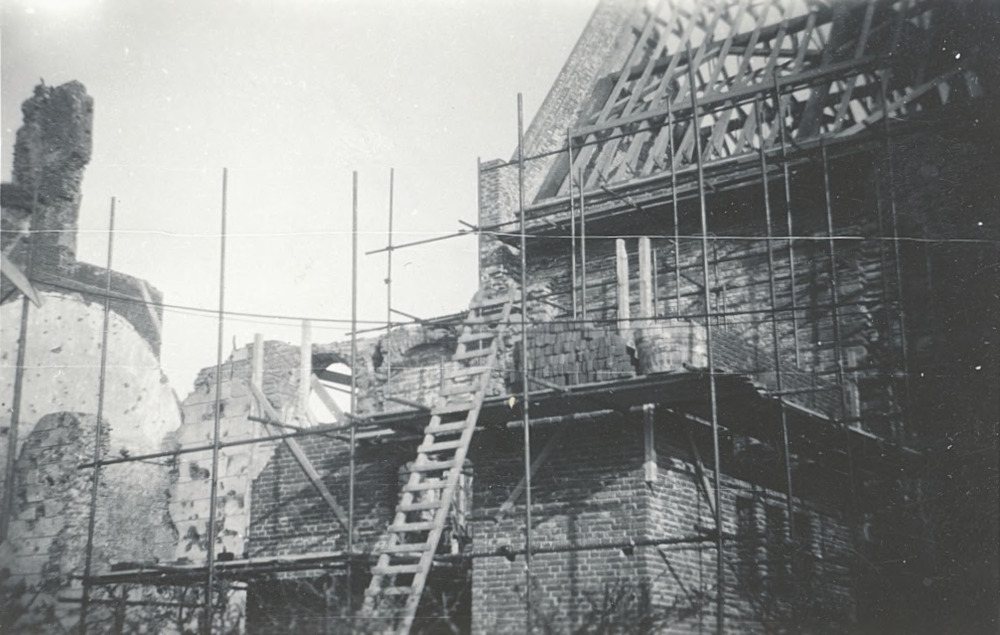 De in de oorlog beschadigde Hervormde Kerk van Eethen