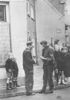 Wereldoorlog II. Een Duitse soldaat probeert een burger te ronselen terwijl kinderen toekijken op straathoek