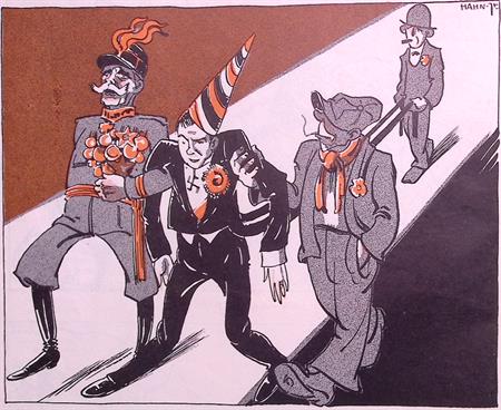 Getoond op deze prent is William Westerman. Geboren in 1892 in Kisaran, Nederlands-Indië, was William Marten Westerman een invloedrijk politicus en bankier in Nederland. Hij stierf in 1950 in Gouda. Getoond op deze prent is de VNH. Het Verbond voor Nationaal Herstel (VNH) was een autoritaire, rechtse Nederlandse partij die zich inzette voor krachtig gezag en tegen partijpolitiek ageerde. Een thema in deze prent is Vrijheidsbond.Spotprent over politieke onrust bij de VrijheidsbondOp de prent is een bovenschrift te lezen: Alzijdige desertie in den Vrijheidsbond. De ondertitel leest: De leider: 'Links uit de flank... marsch!'.De weergegeven spotprent is uitgegeven op 18-03-1933. links onder op de prent is de handtekening van Funke Küpper te zien. De afmeting van deze prent is ca. 28 bij 24 centimeter.Met arbeiders en SDAP-leden als doelgroep vulde De Notenkraker tussen 1907 en 1936 het dagblad Het Volk aan met vele originele spotprenten. Deze prent is bijna honderd jaar oud. Het papier kan op plekken beschadigd zijn, zie de foto's voor de details om te zien wat de exacte staat van de prent is.