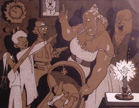 In de prent zijn Fascisme en Nazisme verwerkt. Het fascisme, gezien als extreemrechts, is een autoritaire nationalistische beweging die zich verzet tegen democratie, communisme, liberalisme en parlementaire systemen. Het nationaalsocialisme, bekend als nazisme, is een fascisme-gerelateerde ideologie die in Duitsland kort na de Eerste Wereldoorlog opkwam.Een militair gezin op SpotprentOp de prent is een bovenschrift te lezen: Het militaire huisgezin naar het ideaal van Deckers. De ondertitel leest: Vader komt thuis, moeder kommandeert: 'In orde...' staat!''.Het betreft hier een spotprent uitgegeven op 18-03-1933. De handtekening van George van Raemdonck is links onder te vinden. De afmeting van deze prent is ca. 28 bij 36 centimeter.Bij het Nederlands satirisch-politiek weekblad De Notenkraker maakte George van Raemdonck talloze originele omslagen, tekeningen en beeldverhalen. Deze prent is bijna honderd jaar oud. Het papier kan op plekken beschadigd zijn, zie de foto's voor de details om te zien wat de exacte staat van de prent is.