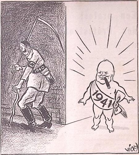 Op de prent zijn Adolf Hitler en Benito Mussolini te zien. Adolf Hitler, leider en politicus, was van 1934 tot 1945 het staatshoofd van Duitsland. Een thema in deze prent is Oorlog. Oorlog is een gewapend conflict dat plaatsvindt tussen ten minste twee partijen, zoals staten of volkeren.Vrij Nederland - Panorama.Het bovenschrift leest: BRENNER PANORAMA. Op de prent is een ondertitel te lezen: 'kijk eens hoe het brandt, Benito!' 'Maar is het niet aan de verkeerde zijde van het kanaal, Adolf ?'.