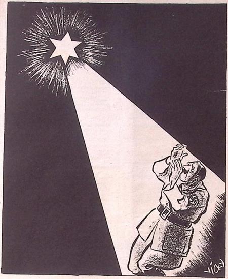 Verbeeld op de prent zijn Jezus en Adolf Hitler. Jezus, ook bekend als Jezus Christus of Jezus van Nazareth, is een centrale figuur in het christendom, geboren rond 5 v.Chr. en gestorven in 30 of 33 n.Chr. Hitler, Adolf, was een politiek leider en de regerende figuur van Duitsland van 1934 tot 1945.Vrij Nederland - Kerstmis.De ondertitel leest: KERSTMIS 1940 Uncle Sam: Zoo kan het niet doorgaan Bijgaande plaat namen wij over uit de 'Knickerbocker.' welke wordt gepubliceerd in New York en waaraan onze landgenoot, Louis Raemakers, regelmatig medewerkt.