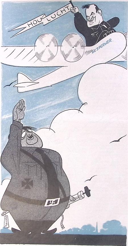 Getoond op deze prent is Anton Mussert. Anton Adriaan Mussert, geboren in 1894 in Werkendam, was een leider van de NSB en collaboreerde met de nazi's in de Tweede Wereldoorlog. Hij stierf in 1946. Een thema in deze prent is Nazisme. Het nationaalsocialisme, bekend als nazisme, is een fascisme-gerelateerde ideologie die in Duitsland kort na de Eerste Wereldoorlog opkwam. De swastika, een symbool met wortels in de Indusbeschaving, werd in meerdere Euraziatische culturen gebruikt en kreeg tijdens de Tweede Wereldoorlog bekendheid als het hakenkruis van de nazi's.Anton Mussert voelt zich geconflicteerd over voetbal op spotprent.Het bovenschrift leest: De 'Nationale'. Op de prent is een ondertitel te lezen: 'Huilen kan ik niet, lachen mag ik niet!'.De datum van uitgeving is 23-02-1935. Peter van Reen heeft zijn handtekening links onder gezet.Peter van Reen maakte deze spotprent als onderdeel van de weekkrant De Notenkraker. Deze krant was een Nederlands politiek-satirisch weekblad, altijd voorzien van originele spotprenten. Deze prent is bijna honderd jaar oud. Het papier kan op plekken beschadigd zijn, zie de foto's voor de details om te zien wat de exacte staat van de prent is.