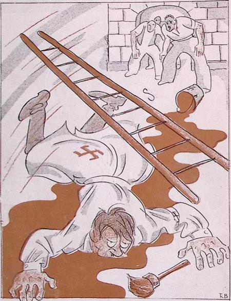 Het symbool van het ,,herboren Oostenrijk" op spotprent