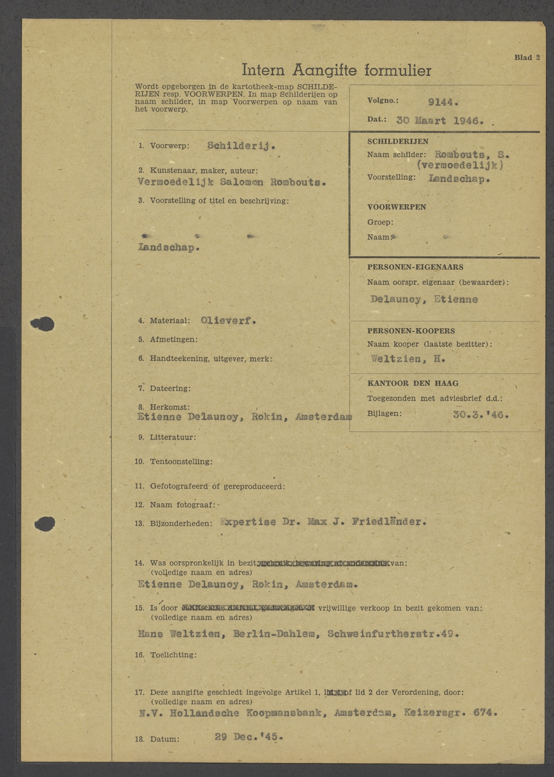 SNK Aangifteformulier - Rombouts, S. - Landschap