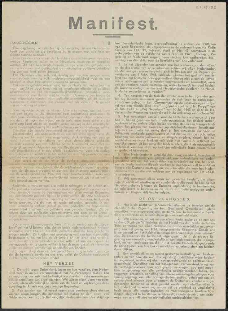 Map Illegaliteit (diverse zaken): Pamflet: Manifest (uit 1943 naar aanleiding van de terugvoering krijgsgevangenschap van Nederlandse soldaten;