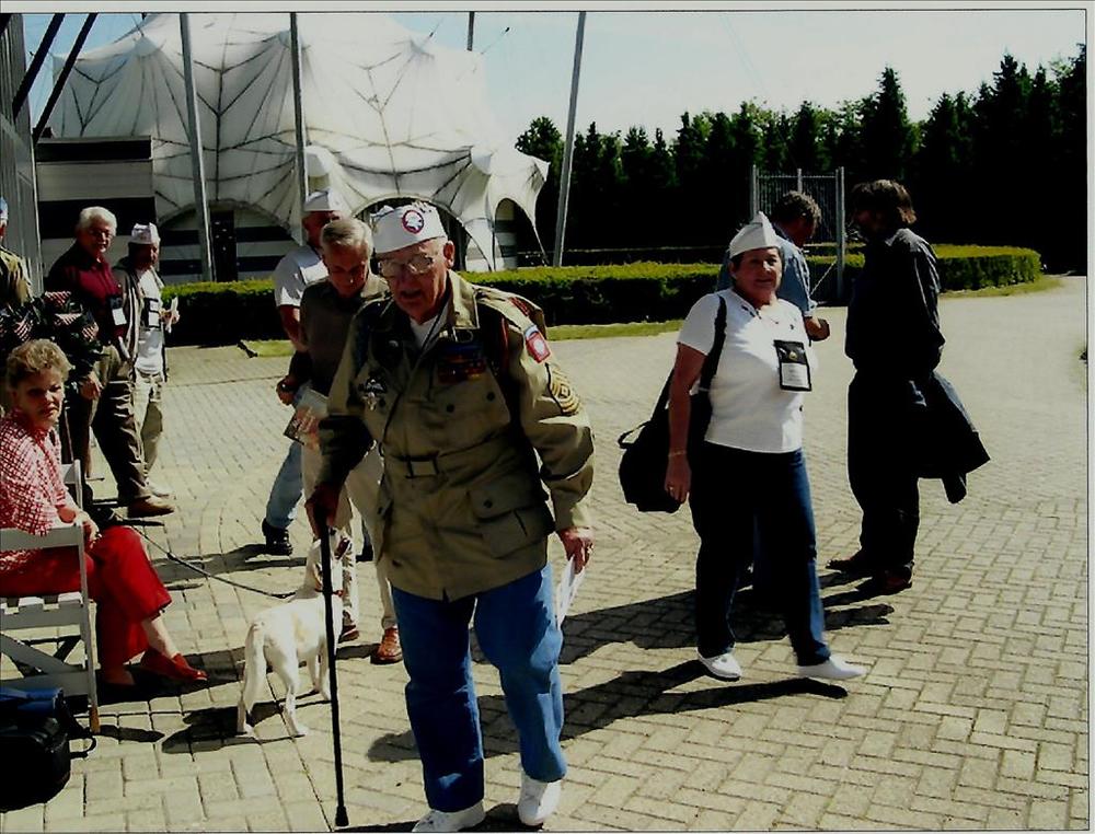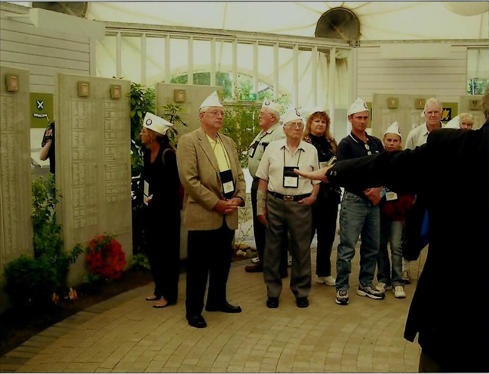 Bezoek Static Line Group, eind mei 2004 veteraan 82nd Airborne Division op grasveld bij museumcafé