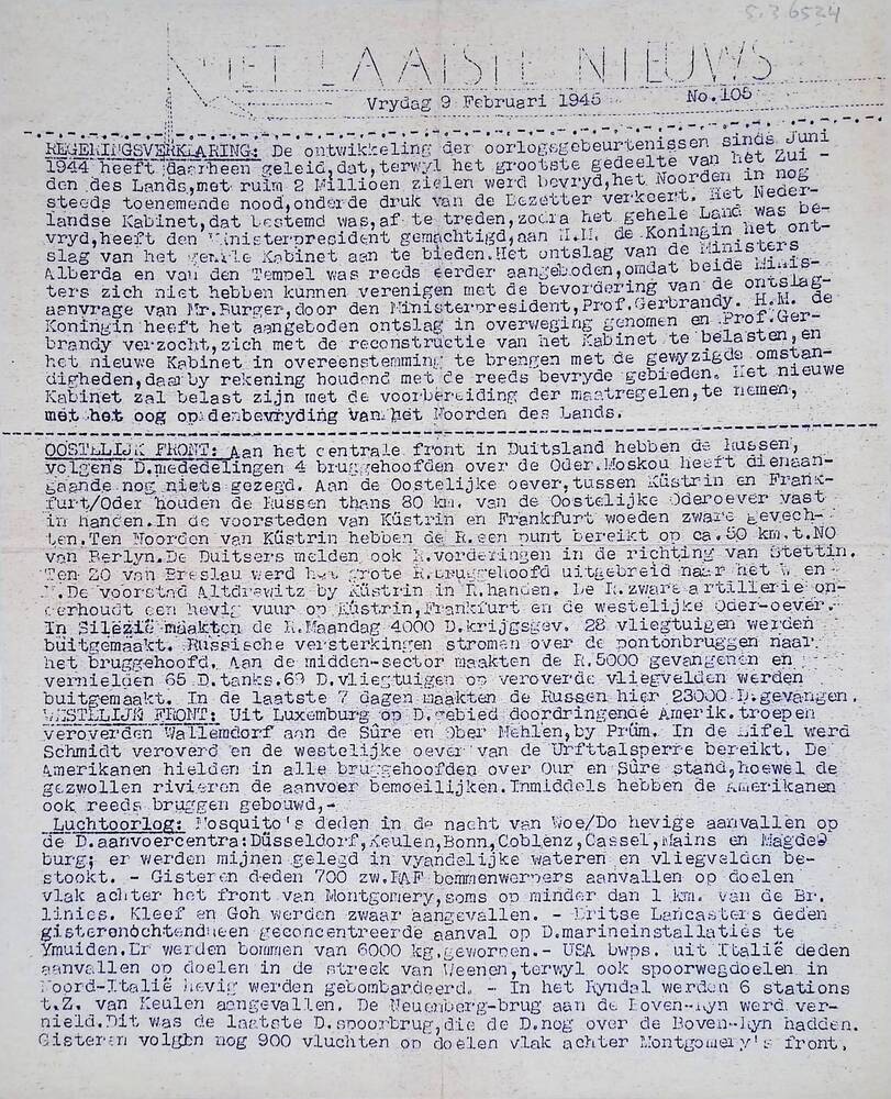 Het Laatste Nieuws, no 186, Vrijdag 4 mei 1945
