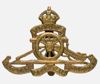 Een messing baretgesp van het Royal Regiment of Artillery. Het embleem van de Royal Artillery bestaat uit een kanon met daarboven een kroon en banderol met het motto 'UBIQUE' (overal). Onder het kanon een tweede banderol met de tekst 'Quo Fas et Gloria Ducunt' (waar recht en glorie leiden). Het embleem werd gedragen op een baret. Aan de achterzijde een verticale speld.