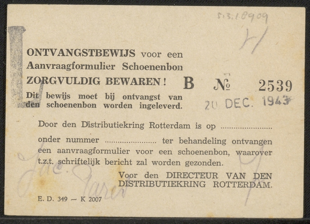Ontvangstbewijs voor 6 eenheden van kolenhandel Kieboom op naam van Paret