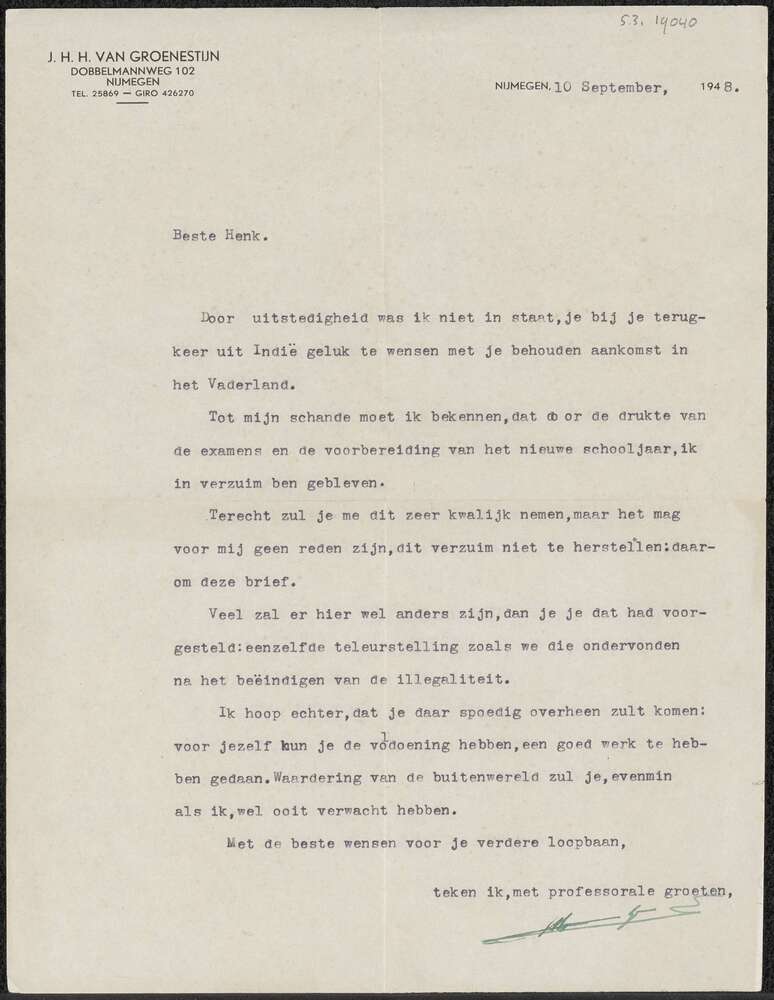 Brief van K. Kaat aan H.J. Brouwers, d.d. 2 september 1948 over het werk bij de rubberondernemeing Tjiseroe Tjipari.