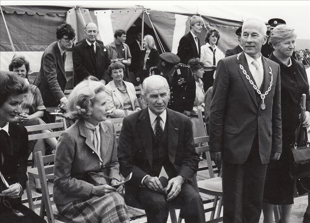 Foto van Generaal Gavin, Mw. Gavin, Burgemeester van Gils tijdens herdenking