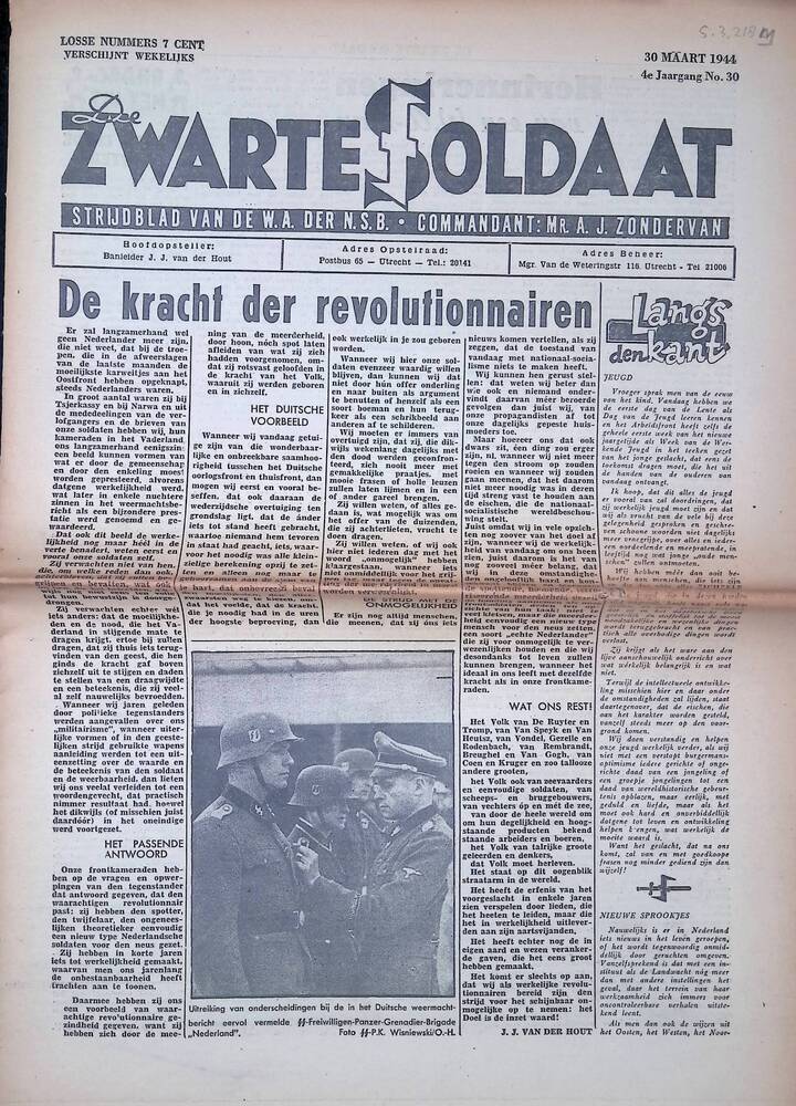 De Zwarte Soldaat, weekblad van NSB weerafdeling, jaargang 1943/44 No. 36