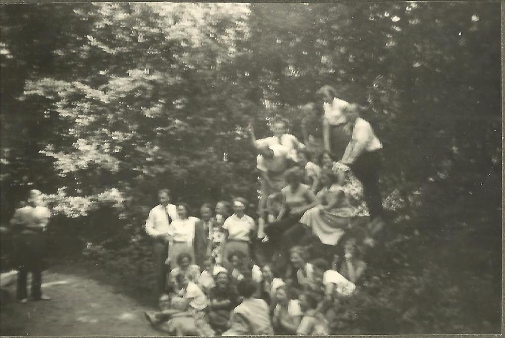 Marva; grote groep jonge mensen bij een 'trap'-waterval tekst: 'De waterval'