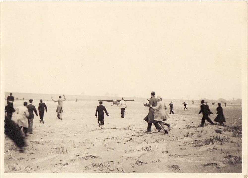 foto tweepersoonsvliegtuigje dat op 5 mei 1945 verzetsstrijder majoor Kamphuis oppikte