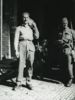 Foto van groep Britse militairen voor open deur van gebouw; de meest rechtse man heeft een Lee Enfield No 4 Mk I geweer.