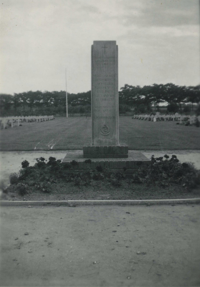 Foto van grafstenen van bombardier W.C. Whitney en major A.A.K. Pope.Tekst achterop: "St. Vaast-en-Auge Churchyrd. Graves of 4924410 Bombardier W.C. Whitney, 3rd Airlanding anti-tank battery, Royal Artillery, K.I.A. 6-6-44. 77672 Major A.A.K. Pope, Parachute Regiment, Army Air Corps, deputy assistant adjudant + quartermaster general 3rd Parachute Brigade Headquarters, K.I.A. 6-6-44".