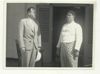 Vel met twee opgeplakte kleine foto's van Mussert en een van Cornelis van Geelkerken. Anton Adriaan Mussert was een Nederlands politicus en ingenieur die als een van de oprichters leiding gaf aan de Nationaal-Socialistische Beweging in Nederland en in de jaren van de Tweede Wereldoorlog collaboreerde met de nazi's. Cornelis van Geelkerken was een Nederlands nationaalsocialistisch politicus en collaborateur