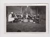 Groepsportret van feestvierende krijgsgevangenen foto's van Rika Lourant, actief bij het Rode Kruis in oorlogstijd bij de Verpleegcolonne afdeling Nijmegen en naoorlogs in Nederlands-Indië; achterop de foto is de letter ''B'' geschreven.