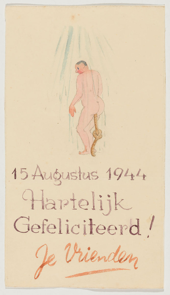 Kleurenfoto, staand. Objectfoto van 'Hartelijk Gefeliciteerd!' (NMKV_04263).