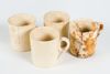 Kleurenfoto, liggend. Objectfoto van mokken uit bodemvondst. In Kamp Vught gebruikte drinkbekers. Gevonden tijdens de bouw het huidige hoofdgebouw van Nationaal Monument Kamp Vught.