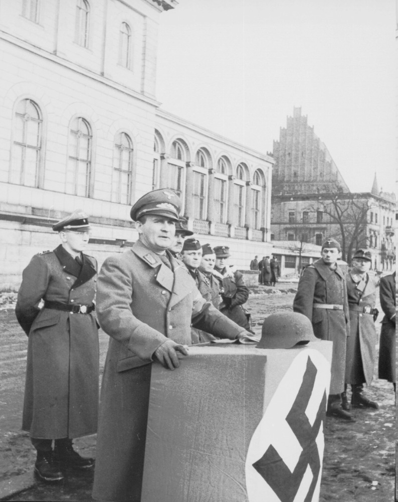 Die ersten Bilder aus der Festung Breslau Neue Volkssturm-Bataillone der Gauhauptstadt werden von Gauleiter Hanke vereid...
