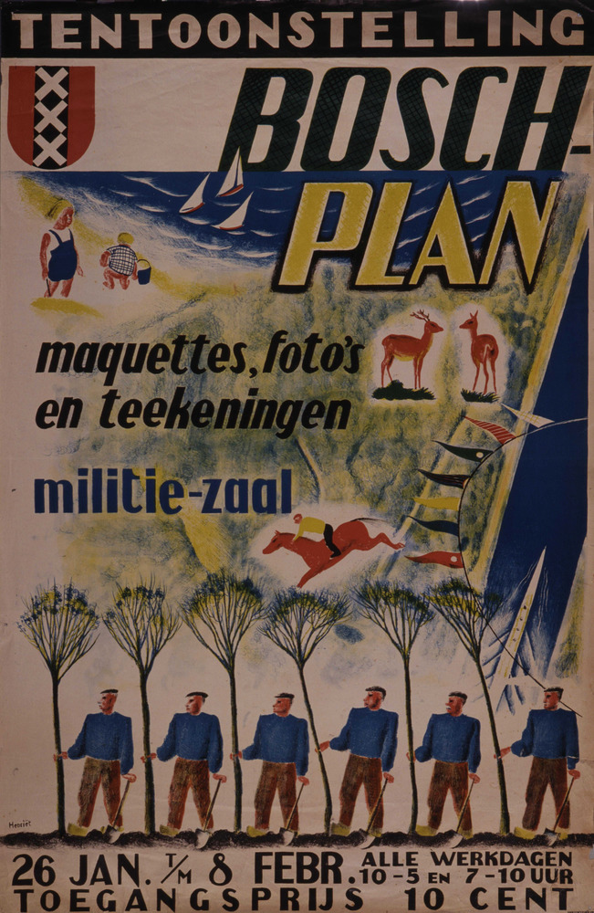 Affiche : Bosplan. Tenttonstelling van plan voor aanleg van het Amsterdamse Bos. [1929 ?]