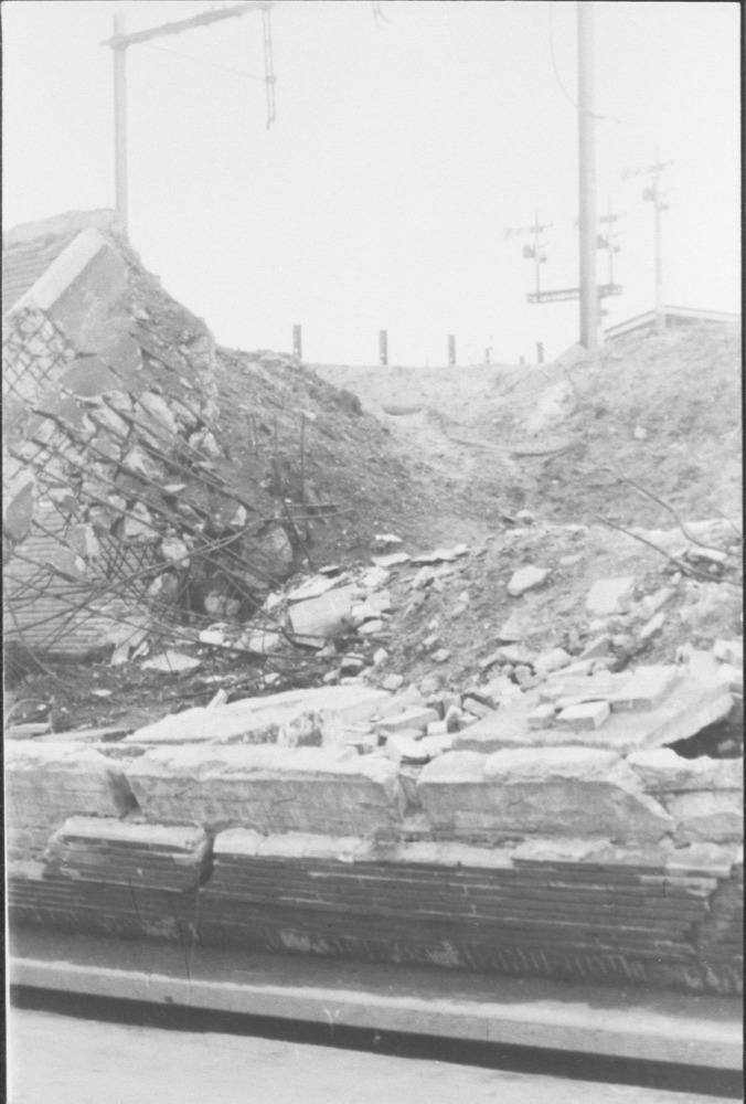 Station Gouda, aangerichte verwoesting op het stationsterrein.