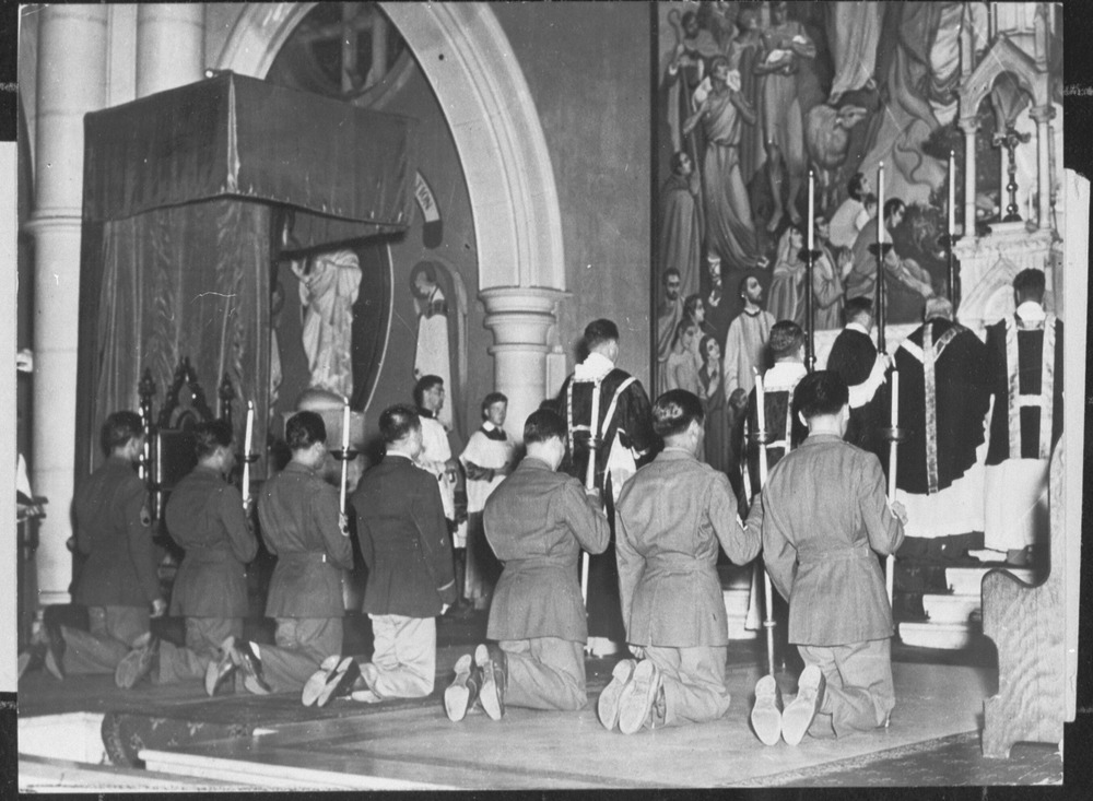 Filipino soldiers pray for their president, cheated by death from return to homeland.