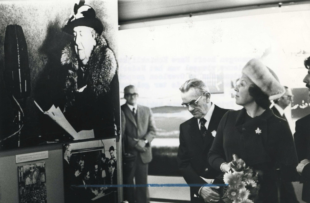 Britse veteraan en voorzitter van het bestuur van het Bevrijdingsmuseum bekijken de tentoonstelling voer operatie Manna.