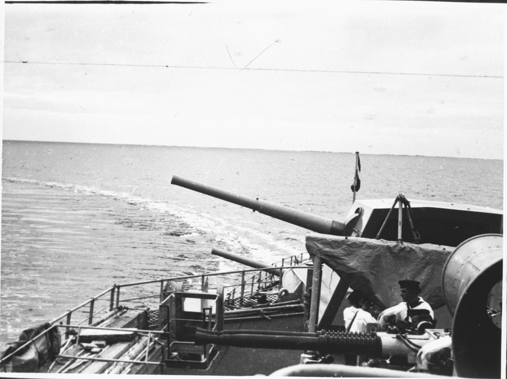 Hr.Ms. van Kinsbergen die in West-Indië van zich heeft doen spreken tijdens schietoefening.