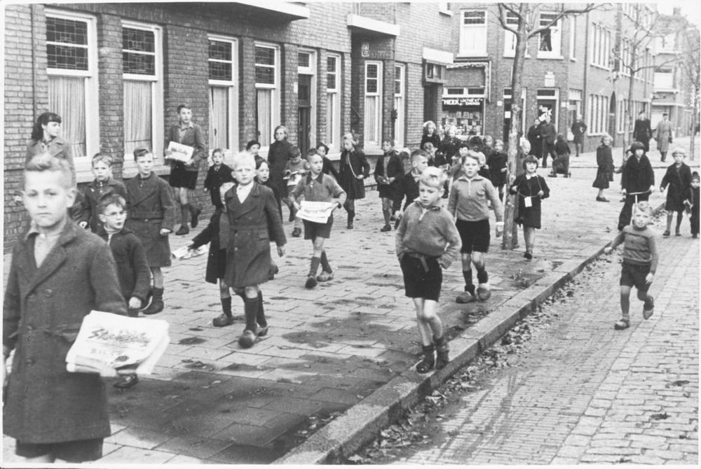Foto: ''Wij winnen de jeugd! Wanneer de Jeugdstorm marcheert neemt de jeugd zelf de colportage met de Stormvlag ter hand...